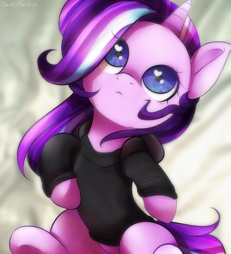 artist:okaces, bed, clothes, cute, glimmerbetes, heart eyes, hoodie, pony, safe, solo, starlight glimmer, sweater, unicorn, wingding eyes