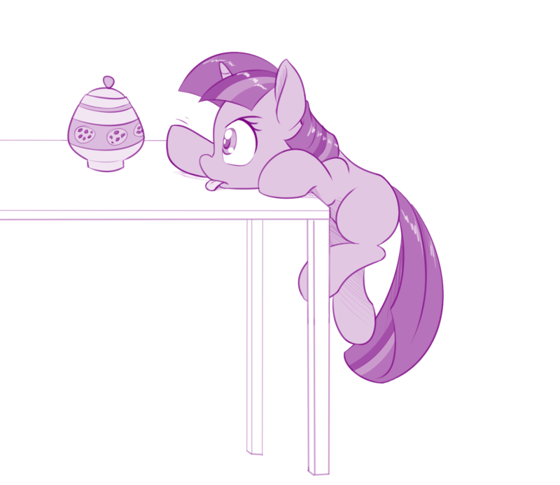 artist:dstears, atg 2017, cookie jar, cute, female, filly, filly twilight sparkle, monochrome, newbie artist training grounds, pony, purple, reaching, safe, solo, tongue out, twilight sparkle, unicorn, younger