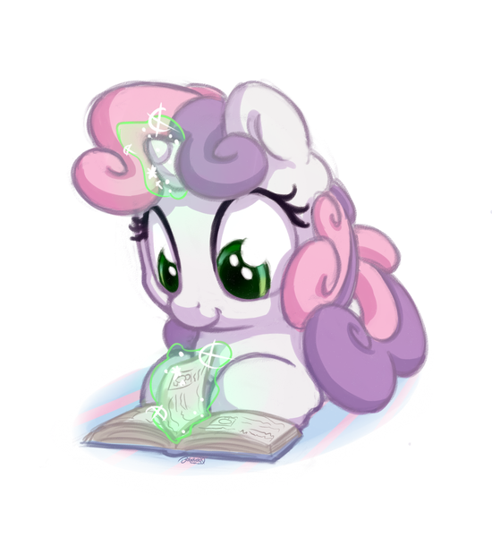 artist:bobdude0, book, cute, diasweetes, female, filly, magic, pony, safe, smiling, solo, studying, sweetie belle, sweetie belle's magic brings a great big smile, unicorn