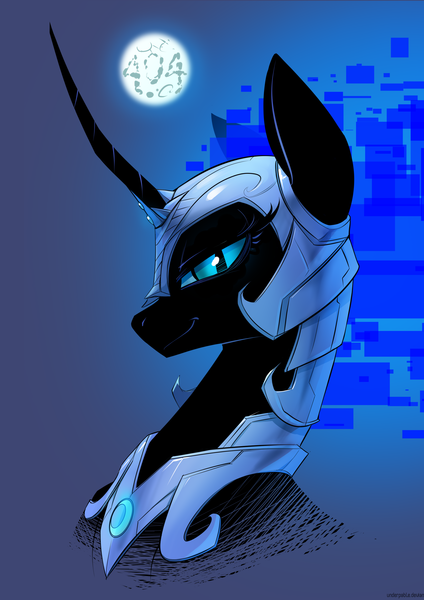 abstract background, alicorn, alternate version, armor, artist:underpable, female, full moon, helmet, mare, moon, nightmare moon, pony, safe, smiling, smirk, solo