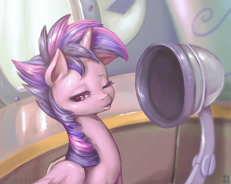 alicorn, alternate hairstyle, artist:mrs1989, castle sweet castle, female, mare, pony, punklight sparkle, safe, scene interpretation, solo, twilight sparkle, twilight sparkle (alicorn), wink