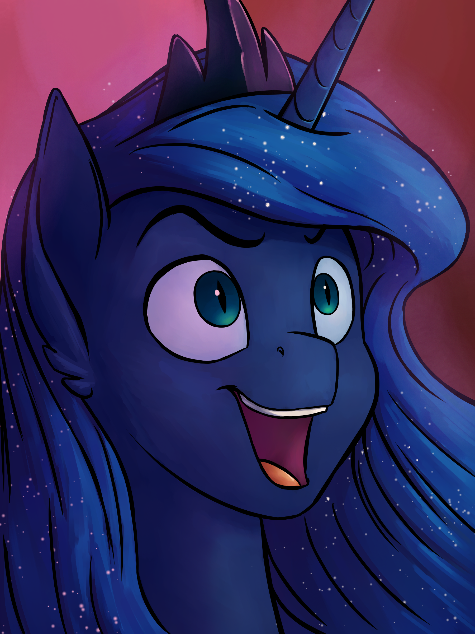 alicorn, artist:vistamage, bust, female, mare, open mouth, pony, portrait, princess luna, safe, slit eyes, smiling, solo, the moon rises